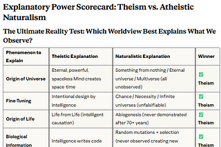 Comparing Theism to Atheistic Naturalism