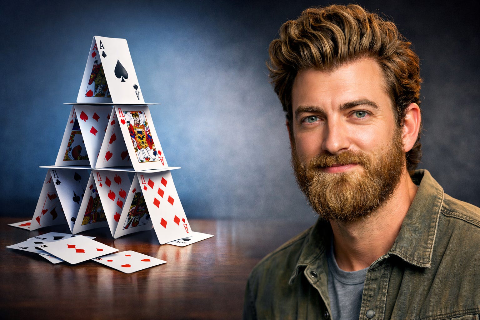 Rhett’s structure wasn’t. It was a single stack of sequential dependencies. Pull the bottom card and everything falls.