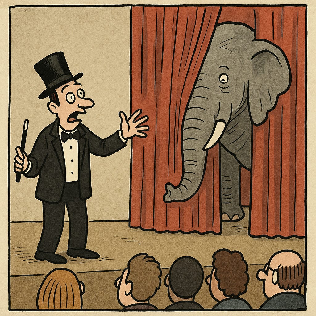 It’s like a magician waving his hands to distract the audience—while the elephant behind the curtain is in plain sight. The elephant is the ungrounded assumptions naturalism hides behind.