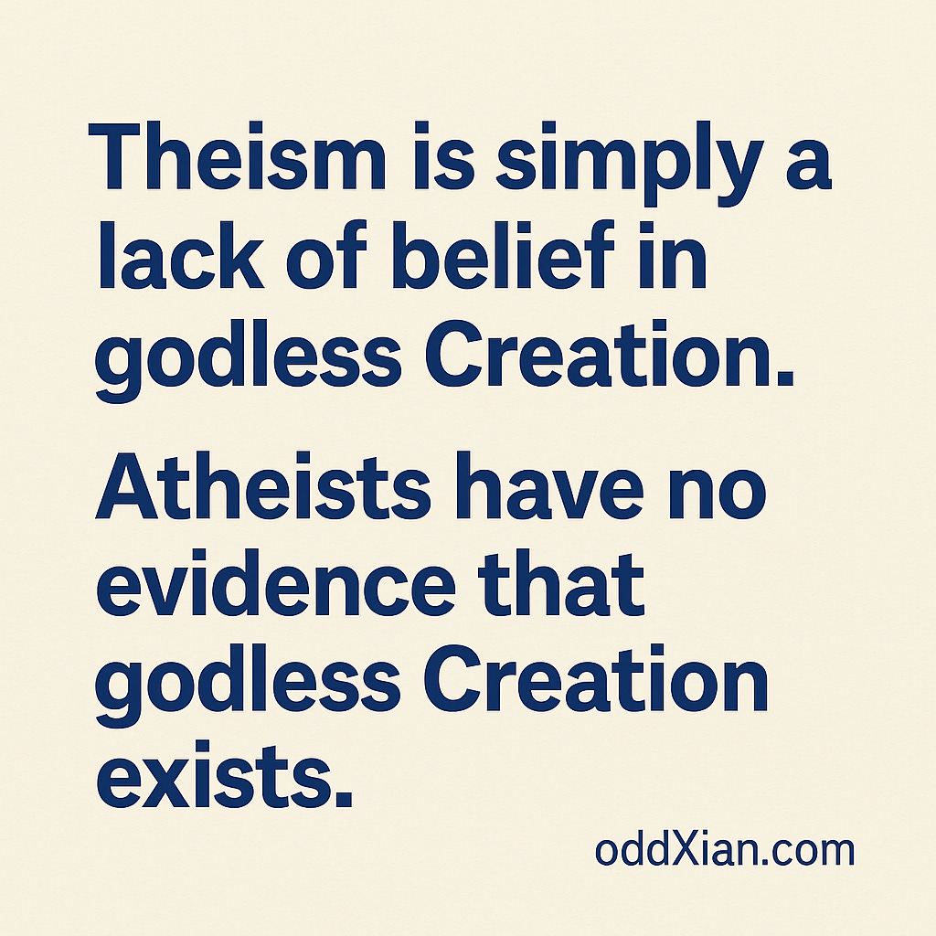 “Theism is simply a lack of belief in godlessness. Atheists have no evidence that godlessness exists.”